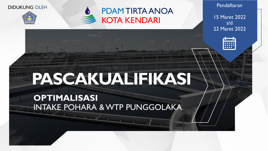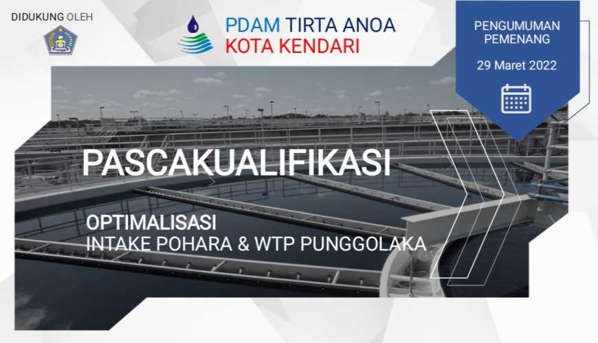 PENGUMUMAN PASCAKUALIFIKASI OPTIMALISASI INTAKE POHARA & WTP PUNGGOLAKA Perusahaan Daerah Air Minum (PDAM) Tirta Anoa Kota Kendari mengundang badan usaha nasional maupun lokal untuk mengikuti Pascakualifikasi Optimalisasi Intake Pohara & ...